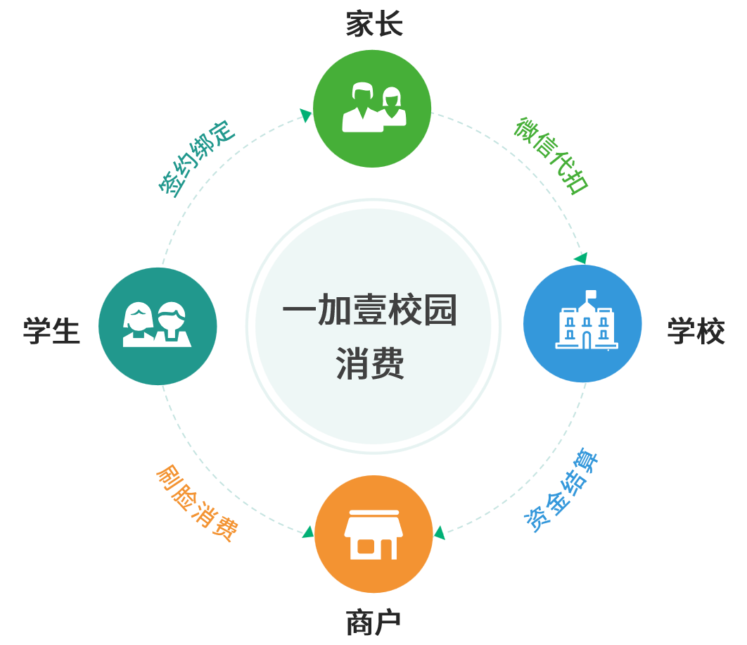 一加壹智慧校园消费解决方案并非单一“刷脸设备”,而是一套覆盖“硬件+软件+服务”的完整体系,从支付、管理、数据三个维度,满足学校、商户、家长、学生所需,解决校园消费的全链条问题。